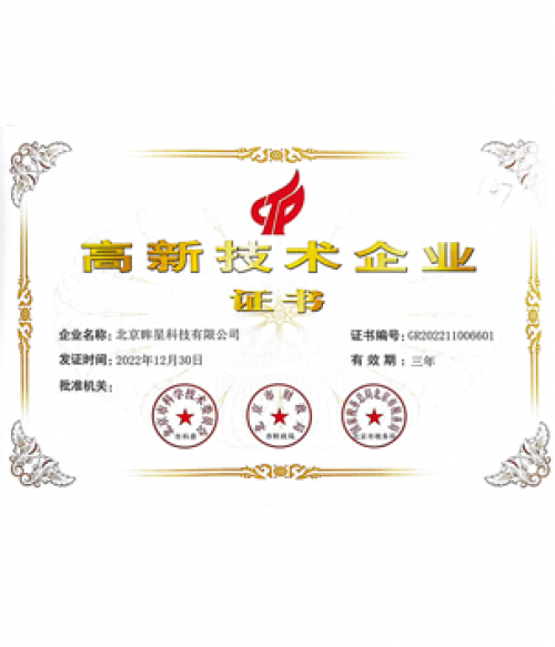国家高新认证,于2022年底荣登国家高新技术企业榜单。